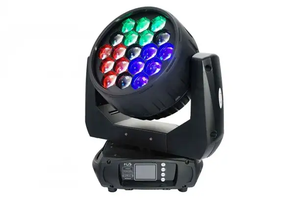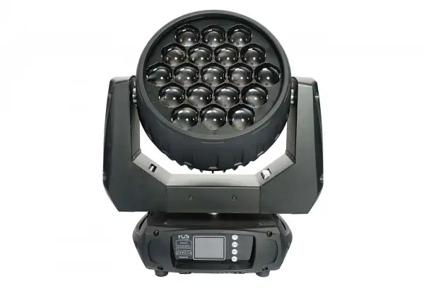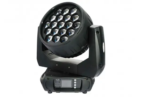 Đèn Moving FOS WASH Q19 HP L005438 có thể vừa xoay vừa chuyển động, được lắp đặt 19 đèn LED RGB công suất 30W, zoom 6-60°, có thể sử dụng hoặc không cần bộ điều khiển DMX, màn hình TFT.