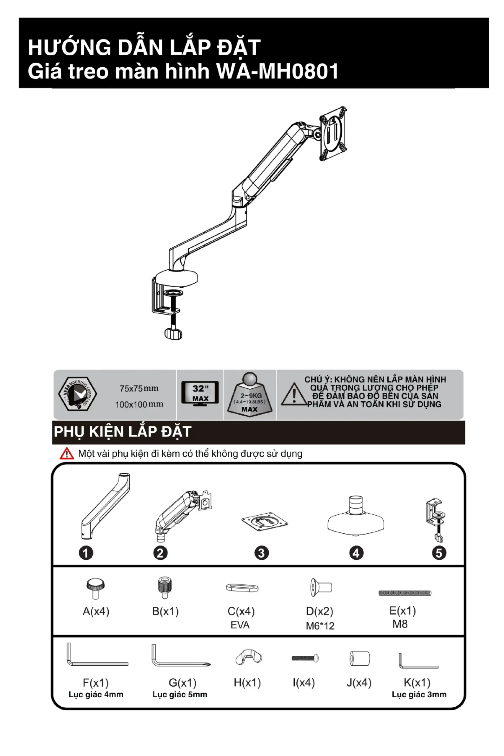 - Hỗ trợ màn hình: 13 inch -32 inch
