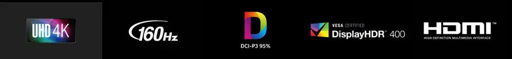 - Cổng cắm kết nối: 2 x HDMI(2.1); 1 x DisplayPort(1.4); SPK; Audio out