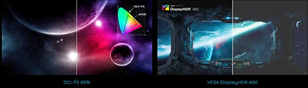 Chứng nhận VESA DisplayHDR 400 đảm bảo chất lượng hình ảnh vượt trội với độ tương phản cao và màu sắc sống động. Công nghệ HDR giúp tái tạo chi tiết tốt hơn trong các vùng sáng và tối, mang lại trải nghiệm hình ảnh chân thực và ấn tượng, đặc biệt khi chơi game hoặc xem phim.