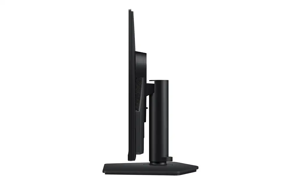Phần chân đế chắc chắn giúp màn hình đứng vững trên bàn làm việc, hạn chế rung lắc trong quá trình sử dụng. Với kích thước 614.0 x 517.8 x 250.2 mm khi lắp chân đế và trọng lượng chỉ 4.1 kg, người dùng có thể dễ dàng bố trí và di chuyển thiết bị. Khi tháo chân đế, độ dày màn hình chỉ còn 45.7 mm, thuận tiện cho việc treo tường hoặc lắp arm.