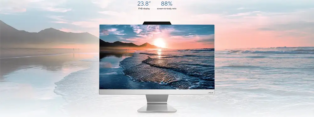 Một trong những điểm mạnh của ASUS A3402WVAK-WPC104W chính là màn hình 23.8 inch Full HD (1920×1080). Với kích thước lớn và độ phân giải cao, màn hình mang lại hình ảnh sắc nét, màu sắc trung thực và góc nhìn rộng, lý tưởng cho cả công việc lẫn giải trí.
