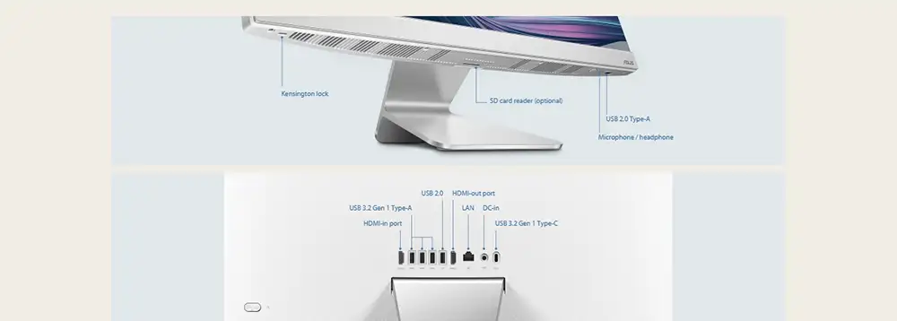 Điểm nhấn của sản phẩm nằm ở thiết kế All-in-One, giúp tiết kiệm không gian tối đa. Toàn bộ phần cứng được tích hợp gọn gàng phía sau màn hình, loại bỏ sự cồng kềnh của thùng máy truyền thống. Điều này không chỉ giúp không gian làm việc trở nên gọn gàng mà còn dễ dàng di chuyển khi cần thiết.